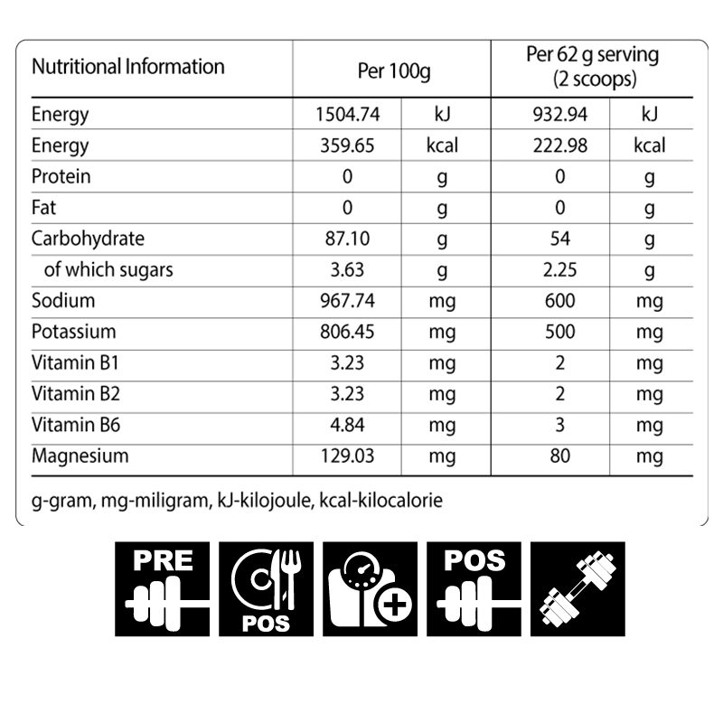 به عنوان مکمل ورزشی روزانه دو پیمانه (62 گرم) در 1000 سی سی آب سرد حل کرده، به خوبی بهم زده و قبل، حین یا بعد از ورزش میل نمایید.