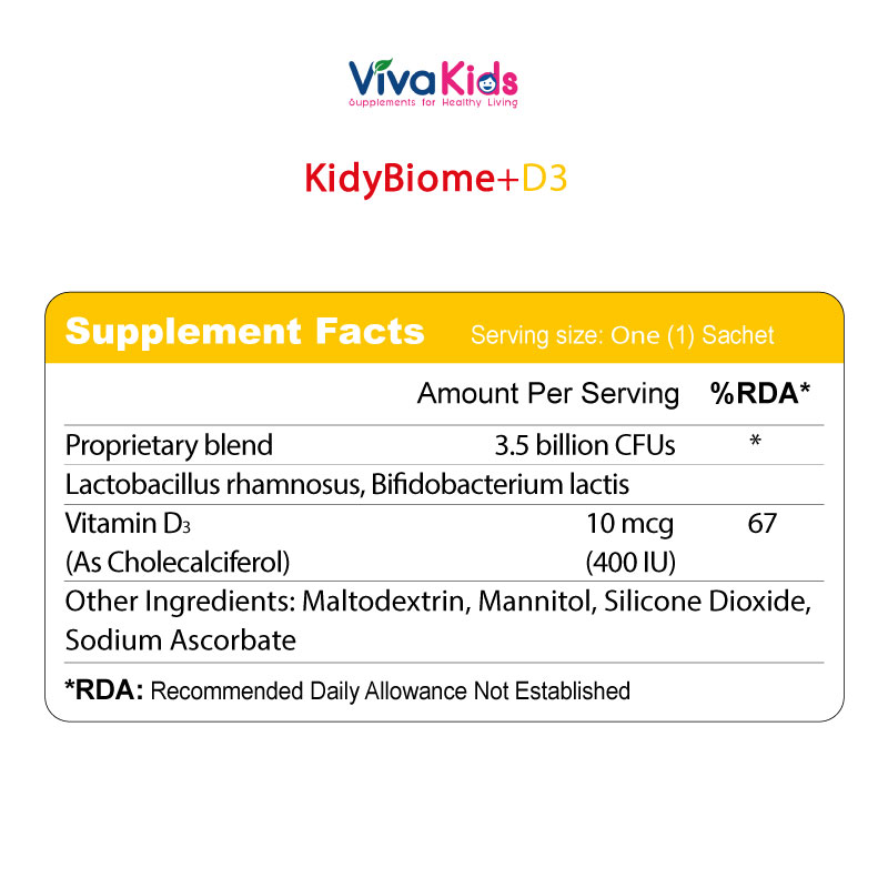 ساشه کیدی بیوم پلاس دی 3 ویواکیدز علاوه بر توازن میکروبیوتا روده، سبب بهبود رشد و تمایز استخوان نیز می شود.