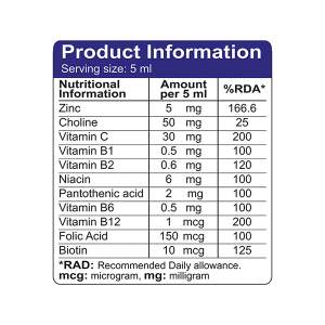 - شربت زینک پلاس ویوا کیدز، حاوی زینک و تمامی ویتامینهای گروه B به همراه کولین