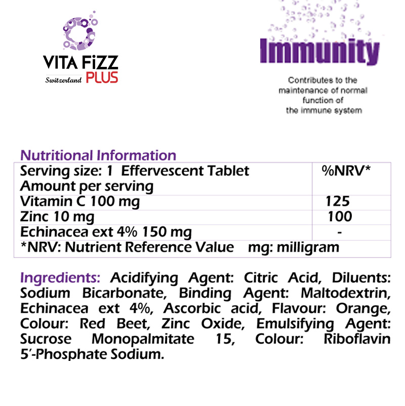قرص جوشان ایمیونیتی ویتافیز پلاس حاوی زینک، ویتامین سی و اکیناسه است. فرمول این محصول طوری طراحی شده است که به عملکرد نرمال سیستم ایمنی بدن کمک کند. زینک موجود در این محصول از سلولها در مقابل استرس اکسیداتیو محافظت می کند. علاوه بر این در عملکرد نرمال سیستم تولید مثل و باروری نیز نقش دارد. ویتامین سی و اکیناسه موجود در این محصول نیز نقش های به سزایی در عملکرد نرمال سیستم ایمنی بدن دارند. اکیناسه سابقه طولانی در استفاده سنتی دارد و یکی از شناخته شده ترین و محبوب ترین داروهای گیاهی است.