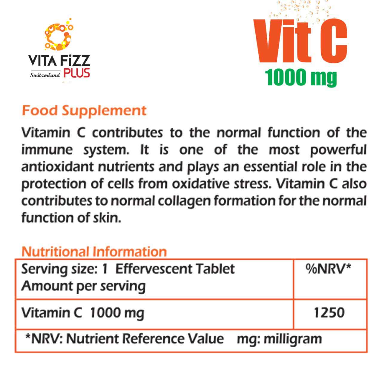 قرص جوشان ویتامین c ویتافیز حاوی 1000 میلی گرم ویتامین سی با طعم پرتقال و زردآلو، می باشد.