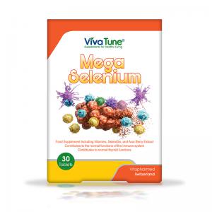 قرص مگا سلنیوم ویواتیون یک مکمل غذائی با فرمولاسیون خاص است، که حاوی ویتامین C، ویتامین E، سلنیوم و عصاره آکای بری می باشد. ویتامین C، ویتامین E و سلنیوم در محفاظت از سلول ها از استرس اکسیداتیو نقش دارد. سلنیوم یک عنصر کمیاب و یک ماده مغذی ضروری برای انسان هاست که به طور طبیعی در بیشتر غذاها وجود دارد و یا به صورت افزودنی و مکمل غذایی استفاده می شود. این ماده معدنی، ماده تشکیل دهنده بیش از دو سلنوپروتئین است که نقش مهمی در باروری، متابولیسم هورمون تیروئید، ساختن DNA و حفاظت از بدن در برابر آسیب اکسیداتیو و عفونت دارد. سلنیوم و ویتامین C در عملکرد نرمال سیستم ایمنی کمک می کند. ویتامین C به بازسازی فرم کاهش یافته ویتامین E کمک می کند. ویتامین C در تشکیل کلاژن طبیعی جهت عملکرد نرمال پوست و سلنیوم جهت حفظ موی و ناخن های طبیعی نقش دارد. سلنیوم همچنین در عملکرد طبیعی تیروئید نیز نقش دارد.