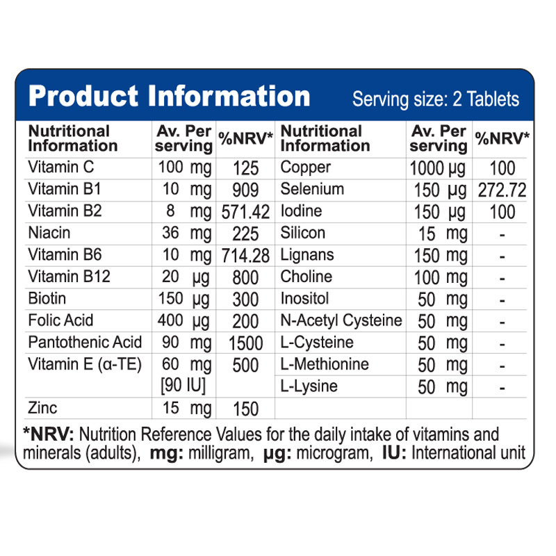 قرص هیرایکس آقایان ویواتیون ، مـکمل غذایی جـهت تغذیه فـولیکول های مو و یک ترکیب دقیق از ویتامین ها، مواد معدنی و آمینو اسیدهاست.این فرمول حاوی بیوتین، سلنیوم و روی است که به حفظ موهای نرمال و سالم کمک می کند. مس نیز به حفظ رنگ مو کمک می کند.