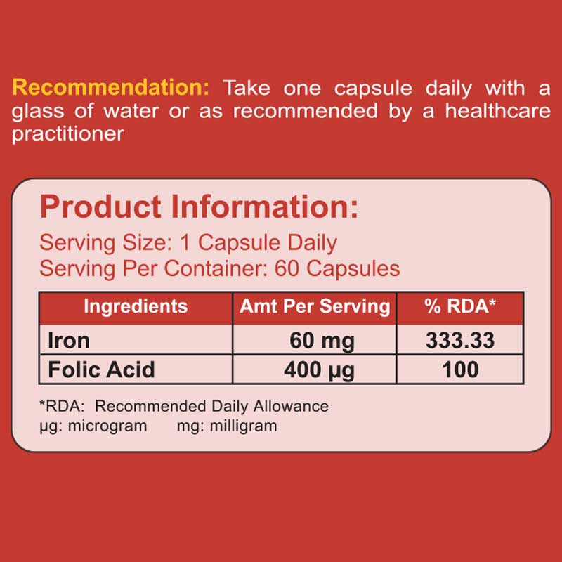 60 میلی گرم آهن المنتال و 400 میکروگرم فولیک اسید