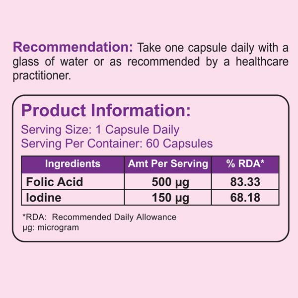 حاوی 500 میکروگرم فولیک اسید و 150 میکروگرم ید